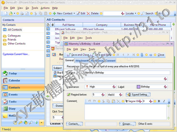 • Efficient Software Efficient Mans Organizer v3.60.352 英文正式版(個人資訊管理系統軟體)