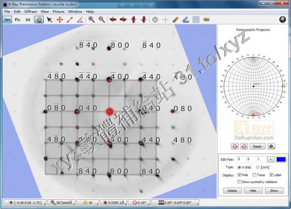 CrystalDiffract讀取存儲的晶體文件,用簡單的操作和測量工具在螢幕上模擬X射線或