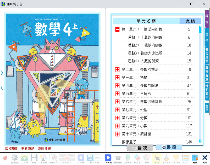 112學年上學期 國小 康軒版 數學電子書 4年級(含課本、習作含解答、教學資源)教學光碟