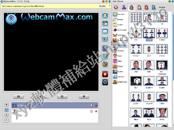 -為網路攝像頭添加視頻、電影、flash、螢幕、圖片以及浮動的文字等等。