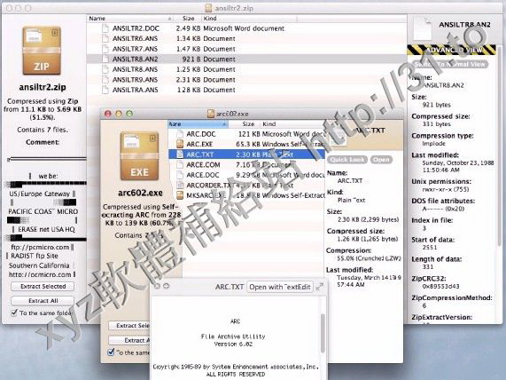 的StuffIt,DiskDoubler,ARJ,LZH和ARC。它也可以處理