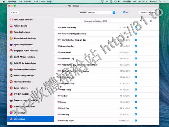 Holidays 2017 v3.00 MacOSX 英文正式版(日曆同步軟體)