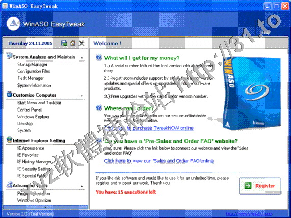 • WinASO EasyTweak v3.0 英文正式版(系統優化軟體)