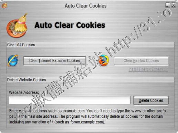 的Cookie。自動清除Cookies可以讓您擦拭地址或者域名,或清除Internet Explorer