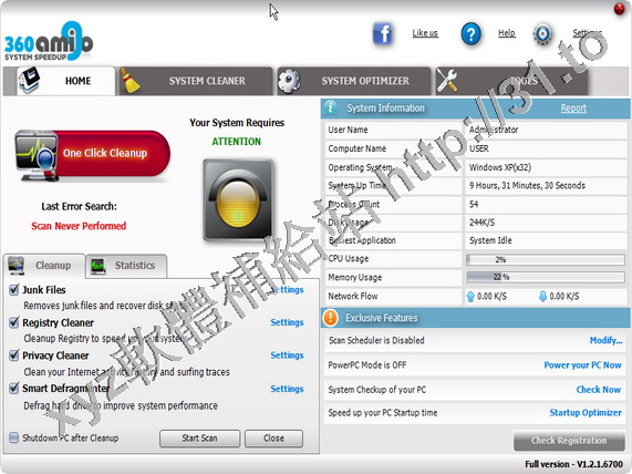 • 360Amigo System Speedup v1.2.1.6000 英文正式版(最佳化和錯誤修復工具,大大提高了電腦的性能軟體)