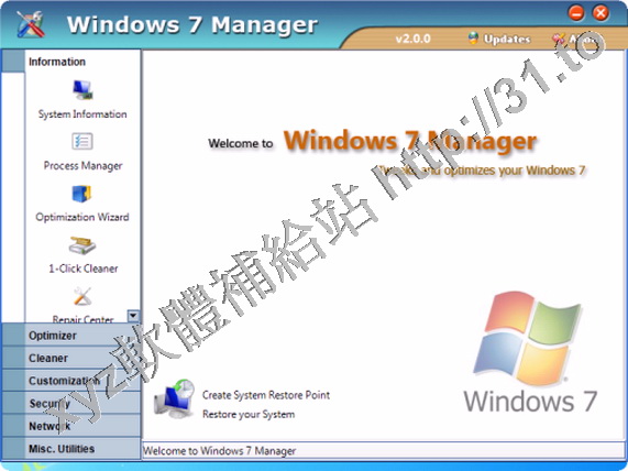 • Yamicsoft Windows 7 Manager v2.0.2 英文正式版(優化和設置 Windows7 工具軟體)
