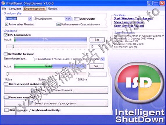 • Intelligent Shutdown v2.1.4 英文正式版(一個計劃安排的時間關閉你的電腦軟體)