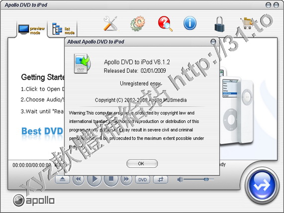 Apollo DVD to iPod v 6.1.2 英文正式版(轉換DVD電影到Apple iPod播放器支援的格式軟體)