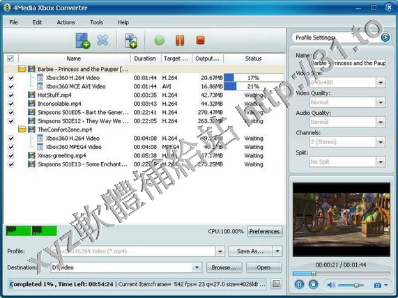 4Media Xbox Converter是一個最好的電影轉換器。幾乎可以轉換所有類型,如:MPEG,WMV,